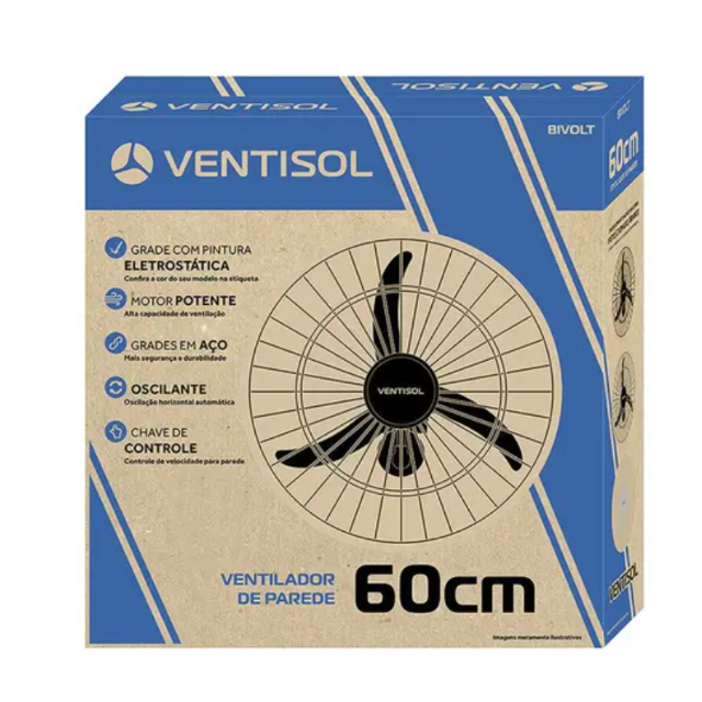 Ventilador de Parede Ventisol Premium 60cm 3 Pás 3 velocidades 200W 543 – Preto – Bivolt