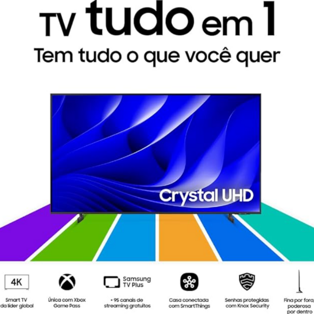 E quando o assunto é conexão, ela dá um verdadeiro show: Wi-Fi 5, Bluetooth 5.2, três entradas HDMI com eARC, duas USBs, entrada óptica, LAN, compatibilidade com Apple AirPlay e muito mais. Isso sem contar os canais gratuitos disponíveis no Samsung TV Plus e o acesso completo à internet para você explorar conteúdos sem limites. A Smart TV Samsung vai além da imagem. É uma experiência viva, envolvente e feita para transformar seu jeito de ver televisão. Com um design moderno, som impactante, tecnologia de ponta e recursos inteligentes, ela traz mais intensidade, praticidade e emoção para o seu dia a dia. Porque assistir é pouco. Com ela, você vive cada cena.