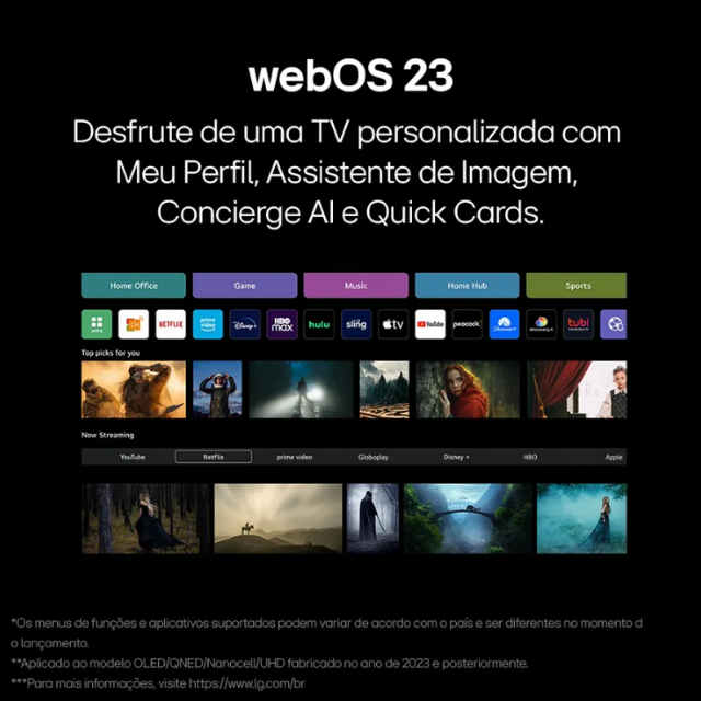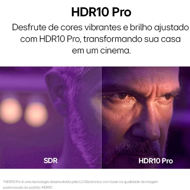 Com sua tela de 43 polegadas e resolução de 1920 x 1080 (Full HD), a TV LG irá lhe proporcionar imagens detalhadas e de excelente qualidade. O processador α5 AI Ger6 melhora automaticamente a imagem e o som para uma experiência muito mais envolvente. Você pode acessar a interface WOW para controlar a soundbar de forma simples, como modos, perfis e recursos úteis. E por fim, o HDR10 Pro garante que cada filme seja apresentado com cores e contraste excepcionalmente precisos para visualizações cinematográficas mais envolventes.